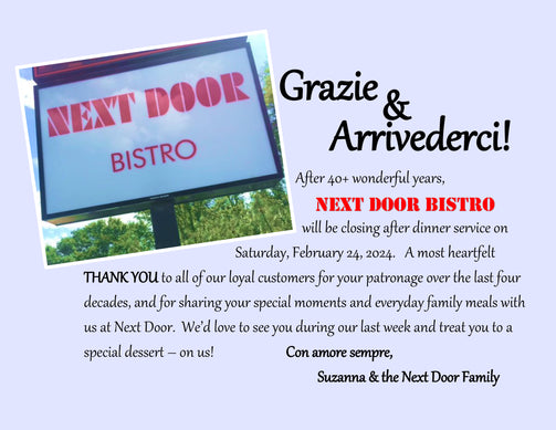Proudly serving the Northwest Suburbs in Northbrook, Illinois across the street from Village Square of Northbrook, and next to another stand alone restaurant; for over 25+ years, Next Door Bistro is a place to find your neighbors and your friends. It is friendly, elegant, and reminiscent of an authentic Italian eatery you’ve been too before, in the old country, right Next Door.